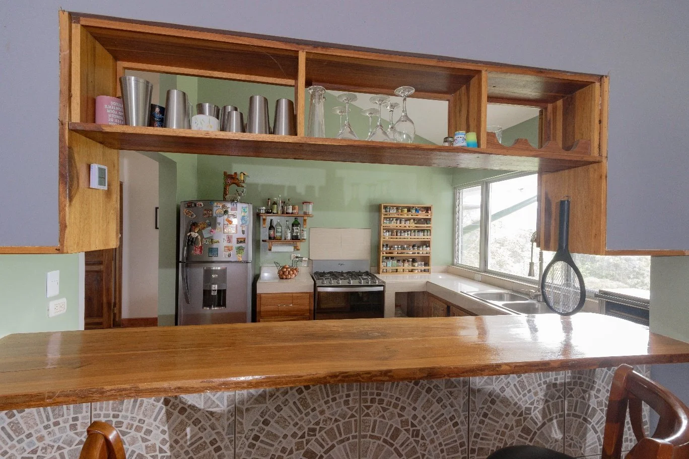 The windows sized and positioned to maximize the views while tempering the bright Costa Rica sun. Your Costa Rica home has an exterior deck, built-in bar and patio with views of Turrialba Volcano.
